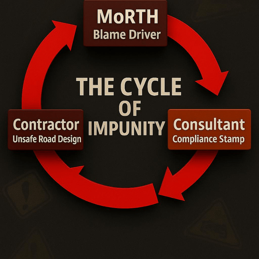 This fatal trio sustains a cycle of unsafe design → accident → victim-blame → more contracts for ‘rectification,’ funded by taxpayer money.