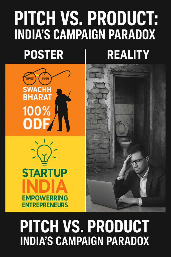 The country has mastered the pitch—grand campaigns, bold announcements, and global headlines. But the product—the daily reality of sanitation gaps, incomplete industrial reforms, and blocked startup participation too often falls short.