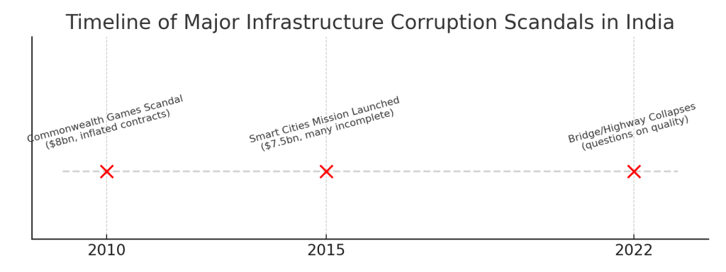 Figure 3: Timeline of Major Infrastructure Corruption Scandals in India