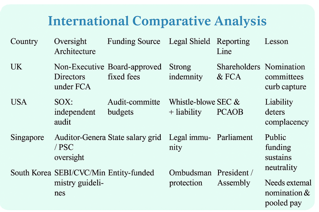 Comparative practice shows that jurisdictions which truly empower independence design it into law, money, and reporting lines. The following table summarises structural contrasts and lessons for India.