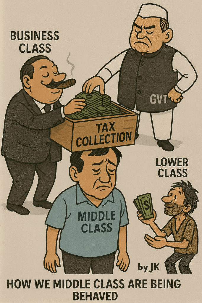 The middle class is treated less as partners in progress and more as a reliable revenue source—taxed and compliance-burdened while receiving little cushioning from markets or welfare. Policy often channels resources upward to big business and downward via subsidies, making the middle class the bridge that funds both. It shows up as heavier tax/compliance hits on visible incomes; essentials inflation outpacing wages; easy credit masking stagnant pay and squeezing savings; welfare that misses the “missing middle”; weak policy voice; and higher friction for small enterprises than large firms. What’s asked is simple: fairer taxation and predictable rules; strong public basics (education, healthcare, transport); discipline on inflation via transparency and competition; simpler compliance; and real mobility pathways—skills, MSME credit on fair terms, and formal job creation. The bottom line: this “being behaved” is quiet coercion; a durable social contract must let the middle class not just comply, but thrive.